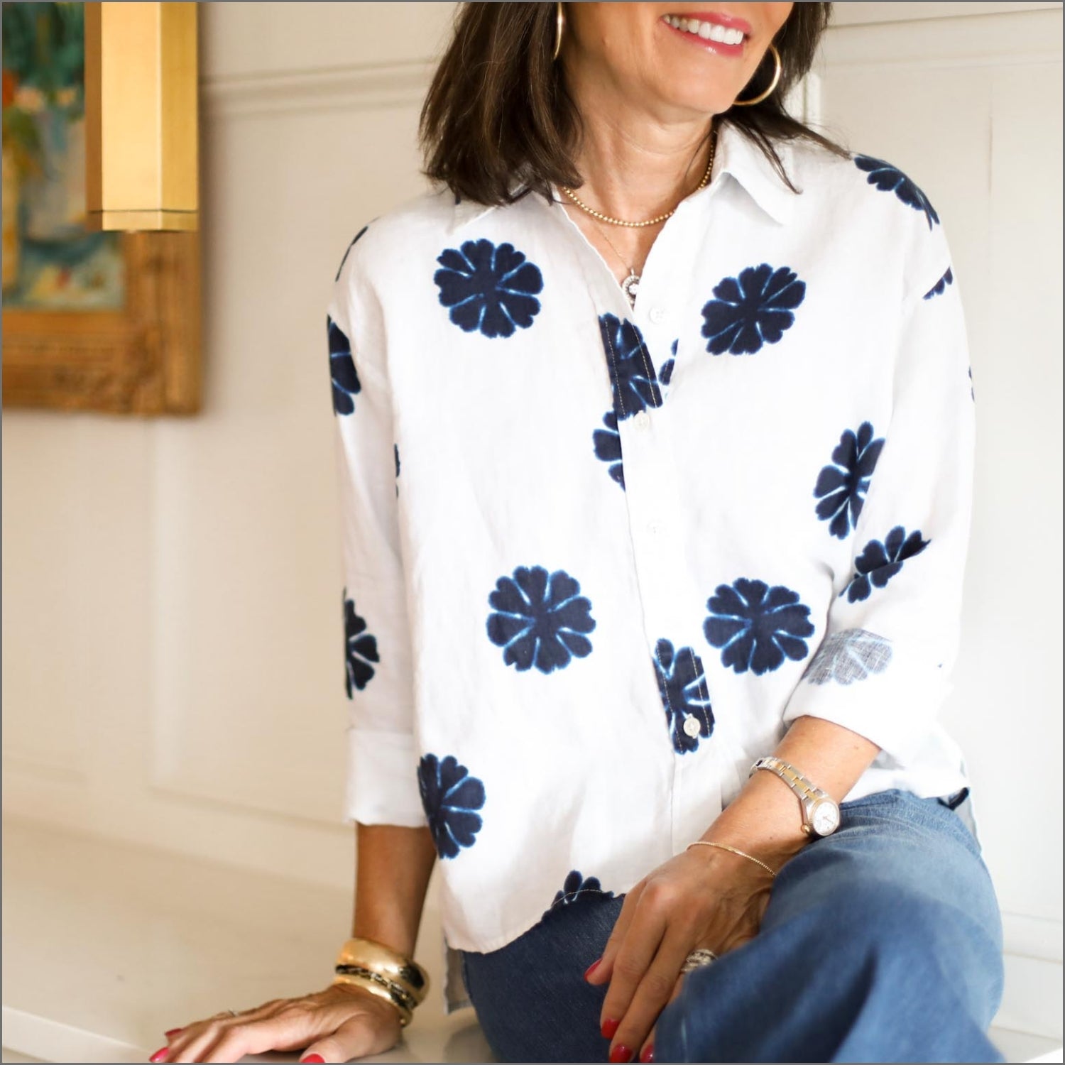 Fabulous Joni popover top from Finley in a gorgeous, blue on blue stripe